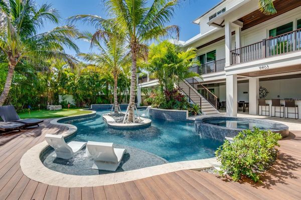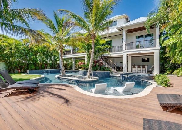 This stunning 9-bedroom, 8.5-bathroom beachfront property offers 3,983 sq ft of heated interior space and comes FULLY FURNISHED with luxurious details throughout. The home boasts an open-concept layout with vibrant living areas, a well-appointed chef’s kitchen, and multiple decks for enjoying ocean views. This home completed in 2020, has a custom private pool with a lazy river-inspired style, a putting green, and a rooftop deck offering 360 water views. Each of the 7 king-sized bedrooms features chic designs, ensuite baths, with many including private balconies. The primary suite includes a large tub, step-in shower, and a private ocean-view balcony. Additional amenities include a convenient elevator, laundry room, and a bar area with a wine fridge. The property’s modern coastal elegance blends perfectly with functional design, creating a space ideal for everyday living or hosting guests- GREAT RENTAL OPPORTUNITY. Located on Anna Maria Island, this home offers beach access and endless opportunities to enjoy the sun and sand. Experience the ultimate blend of luxury and comfort in this meticulously designed coastal haven.