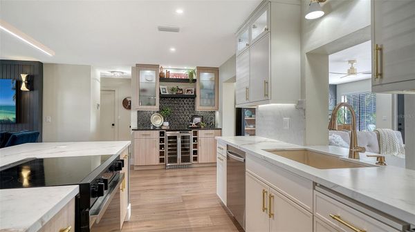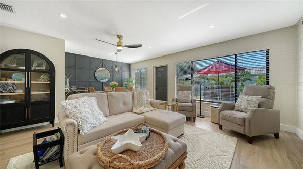 Under contract-accepting backup offers. The Best of Both Worlds: A High-End Renovation with Ultra-Low HOA Fees. Discover a rare opportunity in River Isles—an amenity-rich, impeccably maintained 55+ community where the monthly HOA is only $60. This fully renovated home offers three true bedrooms, two full bathrooms, indoor laundry, and TWO garages—one for your vehicle in front, and a second rear-entry garage perfect for a golf cart, workshop, or extra storage. This home has been thoughtfully transformed with a high-specification renovation. At the heart of the reimagined open floor plan is a stunning designer kitchen featuring engineered stone countertops, well-appointed cabinetry with glass accent doors, in- and under-cabinet lighting, sleek stainless steel appliances, and exceptional storage and workspaces. Professional design touches flow throughout the home. Accent walls, a stylish fireplace, bar area, modern lighting, and fresh interior paint all work together to create a warm, contemporary feel. You’ll also appreciate the ALL-NEW doors and hardware, baseboards and trim, flooring, window treatments, and updated bathroom fixtures. This is a renovation you must see to fully appreciate. Step outside and enjoy the Florida lifestyle on the expansive 32' x 14' concrete patio, framed by fresh landscaping and exterior paint. Whether you’re basking in the sun or entertaining friends, this outdoor space is ready for year-round enjoyment. Feel secure in any weather: this home is NOT in a flood zone, and every window is protected with either metal roll-down shutters or clear hurricane panels. Move-in ready for year-round living, vacations, or the perfect winter retreat. River Isles offers an impressive list of amenities, including a clubhouse, heated pool, fitness center, library, billiards, and shuffleboard courts—all included in the low monthly fee of just $60. Golfers will love the opportunity to enjoy optional, affordable membership to the community’s 9-hole executive golf course, or simply "pay-and-play". Ideally located, this well-run and established neighborhood provides quick access to I-75, downtown Bradenton and Sarasota, and the area’s award-winning beaches, as well as abundant nearby options for dining, shopping, entertainment, and healthcare. A beautifully renovated home in a vibrant, low-cost community—this is Florida living at its best. Schedule your private showing today.