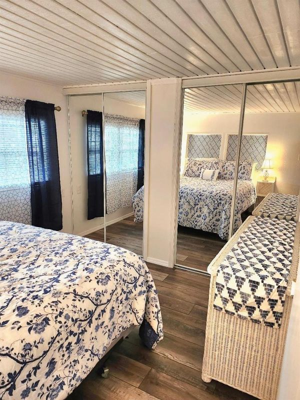YOUR BUNGALOW in Paradise. Still has a lot of vintage charm, but with many updates to this 2 Bedroom, 1.5 Bath Mobile Home in the highly desired, active 55+ Trailer Estates community. Just steps from the heart of the social scene to access the community pool, recreation buildings, shuffleboard, fitness center, and all the wonderful park amenities. New luxury vinyl floors throughout. Second bedroom has new ensuite half bath. 10'x7' Laundry shed with washer/dryer, plus new 7x7 storage shed. A/C 2017. WDO treated in 2019. You own the land. No lot rent, Park Fees are included into annual real estate taxes. Boaters have direct access to Sarasota Bay from the Marina. Trailer Estates community offers so many options for a great day! Enjoy the large, heated community pool, hot tub, gym and wood shop. The community buzzes with pickleball, shuffleboard, kayaking, horseshoes, bocce, dancing and more. A US Post Office on site. 10 minutes to the SRQ Airport. Convenient to shopping, restaurants, the Arts and everything in Bradenton/Sarasota. Sold furnished. Bring offers!