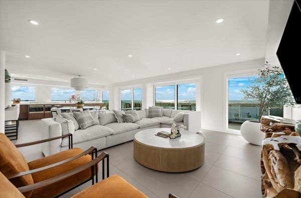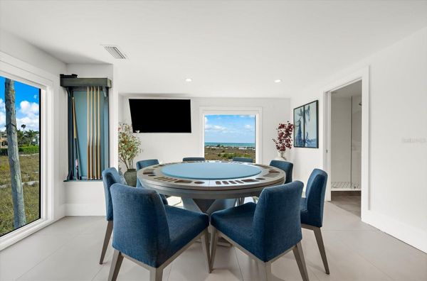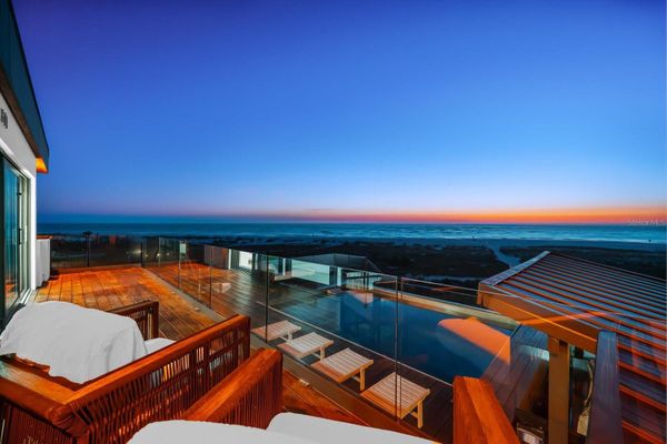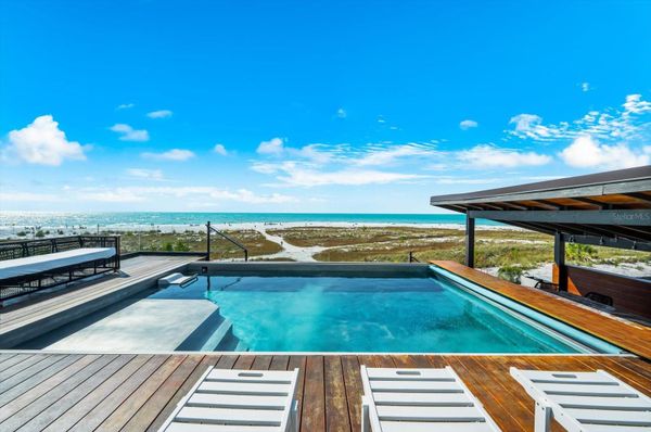 Experience one of the most extraordinary waterfront settings on the coveted North End of Anna Maria Island, just moments from the world-renowned shores of Bean Point. Set on over an acre of Gulf-front beachfront land, this rare estate provides exceptional privacy, expansive shoreline, and breathtaking panoramic views of the Gulf of Mexico. In 2019, the property underwent a comprehensive structural and architectural redevelopment that transformed the residence into a modern coastal estate, including major infrastructure upgrades such as updated electrical, plumbing, and HVAC systems, along with new flooring, custom millwork, redesigned bathrooms, cabinetry, lighting, and modern coastal finishes throughout. Originally constructed as an elevated coastal residence, the home was extensively expanded, redesigned, and structurally reimagined to create a three-level retreat designed for elevated island living. The redevelopment included the addition of a private master suite level, construction of a large elevated pool and entertainment deck, and installation of a dramatic three-story architectural water feature, while completely reconfiguring the interior floor plan. Privately gated and approached by a palm-lined drive, the residence welcomes you with a striking 20-foot waterfall entry. Expansive windows capture nearly 270-degree Gulf views, filling the open living spaces with natural light and coastal breezes. The main living areas flow seamlessly to spacious outdoor terraces finished in Brazilian Walnut (IPE) decking—ideal for sunset entertaining overlooking the Gulf. The chef’s kitchen features custom rosewood cabinetry, three ranges, three ovens, a built-in coffee bar, wine refrigeration, and premium Sub-Zero, Wolf, Cove, and Miele appliances. Multiple bedroom suites include ensuite baths and water views, while a dedicated entertainment level features shuffleboard, a poker table, pool table, and lounge space. The top-floor owner’s retreat, accessible by elevator, captures sweeping Gulf views and includes oversized walk-in closets, a private coffee bar, and a spa-style bath with soaking tub and rain shower. Outdoor amenities include a heated ozone saltwater pool with lap feature, elevated entertainment deck, private gym, infrared sauna, and a two-car garage with additional golf cart space. Direct beach access leads to one of the most peaceful stretches of shoreline on Anna Maria Island. Located near the shops and restaurants of Pine Avenue, this property is a rare opportunity to own a fully transformed Gulf-front estate on over an acre of beachfront land on the North End of Anna Maria Island.