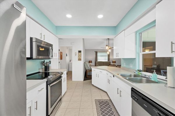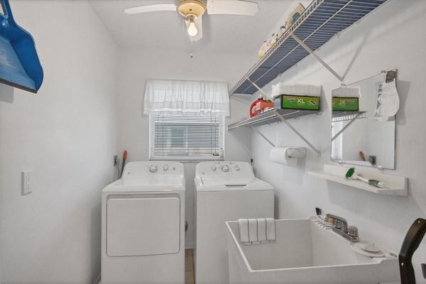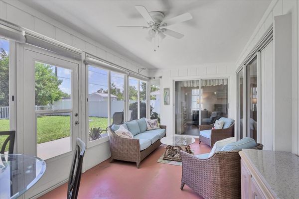 Under contract-accepting backup offers. Less than 7 miles from the Beach! Welcome to your Florida retreat, located in a desirable X Flood Zone, no flood insurance required! This beautifully maintained home offers a generous layout and a long list of updates, making it move-in ready and perfect for full-time living, seasonal stays, or rental income. The HOME FEATURES: 2 bedrooms and 2 full bathrooms, living room + family room + dining room + dinette, an expansive interior laundry room with utility sink & extra shelving, 10' x 21' Florida Room (not included in A/C square footage), 2-car garage + 6' x 8' backyard shed, fully fenced backyard with an extended concrete patio and plenty of closet space throughout. SELLER UPDATES: Luxury vinyl plank flooring in bedrooms and main living areas, vanity in guest bath, updated light fixtures and kitchen lighting, screens in Florida room, A/C unit, renovated primary bathroom, stainless steel refrigerator, washer & dryer, water heater, roof & gutters, interior and exterior paint, backyard fence and patio addition. The primary suite boasts a massive walk-in closet, and you'll find linen closets in both bathrooms, two closets in the foyer, a pantry in the kitchen, and even more storage in the laundry room. With three distinct living areas, living room, family room, and enclosed Florida room, there's plenty of space to entertain or unwind. Located in a quiet, friendly neighborhood, this home is being sold fully furnished, just bring your toothbrush and start enjoying the Florida lifestyle! Don't wait, schedule your showing today and make this coastal gem yours! County records show the home as 3 bedroom.