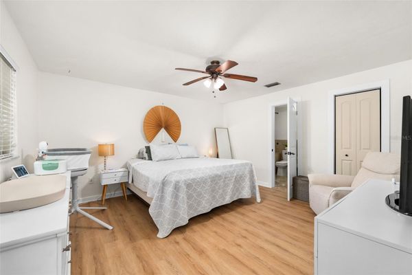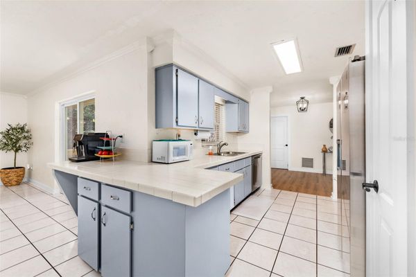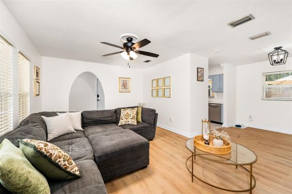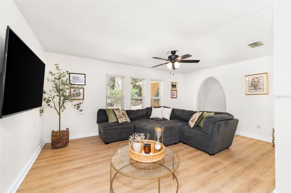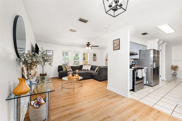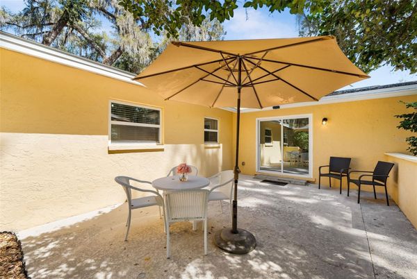 LESS THAN A 10-MINUTE DRIVE TO SHANDS HOSPITAL AND THE UNIVERSITY OF FLORIDA, this charming 3-bedroom, 2-bathroom concrete block home is situated on a corner lot and offers beautiful interior updates and an incredible private backyard retreat with no HOA. As you arrive, you’ll immediately notice the stunning mature landscaping and convenient side-entry garage that enhance the home’s curb appeal. A winding front walkway leads to a welcoming courtyard-style entry. Inside, an elegant arched hallway opens into the cozy main living room, offering plenty of space for a sectional while maintaining comfortable walkways throughout. Additionally, just off the living room, is a versatile nook providing the perfect spot for a desk, reading corner, or extra storage solution. The spacious kitchen features updated stainless steel appliances, including a newer refrigerator and a brand-new dishwasher. Just off the kitchen, the dining area provides additional counter space perfect for entertaining, a coffee station, or serving area, along with sliding glass doors that open to the paved backyard patio— seamlessly blending indoor and outdoor living. This split floor plan offers two well-positioned bedrooms and a full bathroom just off the dining area. On the other side, the primary bedroom is exceptionally spacious, easily accommodating a king-size bed with plenty of room for additional furniture. It also features an en-suite bathroom and a walk-in closet for added comfort and convenience. UPDATED WINDOWS, NEW LVP FLOORING (NO CARPET), UPDATED SLIDER DOOR TO BACK PATIO, UPDATED LIGHT FIXTURES/CEILLING FANS, FRESH INTERIOR PAINT IN 2021, NEW REFRIGERATOR IN 2021, NEW DISHWASHER IN 2026, NEW HOT WATER HEATER IN 2025, ROOF 2019. With its thoughtful layout, beautiful updates, and peaceful backyard setting, this home offers the ideal place to enjoy Gainesville living—schedule your showing today.