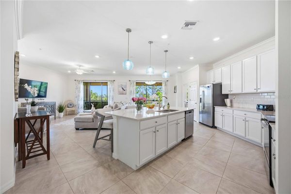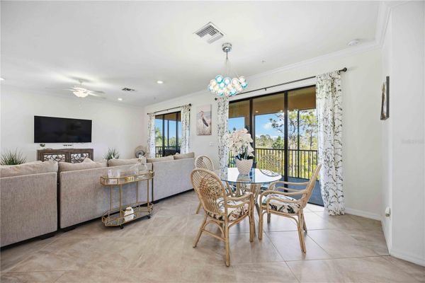 Welcome to your dream condominium! Furnishings are available. Nestled in the heart of serene beauty, this property offers breathtaking water views that will captivate you from the moment you step inside. As you enter, you'll be greeted by a spacious and inviting atmosphere. The large master suite boasts a roomy walk-in closet, providing ample storage space for all your belongings. With a split design, you'll find a comfortable guest bedroom with an adjoining full bath, perfect for accommodating friends and family with ease. Need a space to work from home or unwind with a good book? Look no further than the spare office/den, offering versatility to suit your lifestyle needs. Prepare to be enchanted by the heart of this home - the kitchen, dining, and great room. Bathed in natural light pouring in from the 25-foot-long lanai, this space is an entertainer's paradise. Imagine hosting gatherings with loved ones or simply enjoying quiet moments while soaking in the stunning views. In addition, this community is one of the tops in the Venice area with all amenities included. Pickleball, tennis, fitness center, restaurant, reading room, resort pool, hot tub, with Tiki bar, and a wonderful social atmosphere. Ask us about the golfing here. With its perfect blend of comfort, functionality, and aesthetic appeal, this condominium offers a lifestyle of luxury and tranquility. Don't miss your chance to make it yours and experience waterfront living at its finest! Schedule your viewing today. This property has a very social membership with plenty of activities.