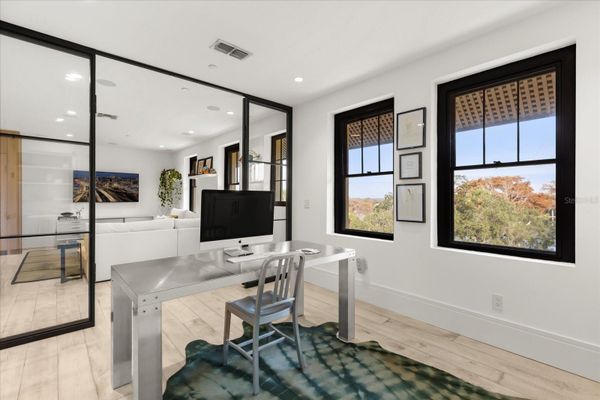 Perched on the top floor in the heart of Winter Park, this luxury, open-concept residence offers a rare blend of elevated design and everyday ease. Enjoy the peace of no neighbors above, plus the privacy, security, and lock-and-leave convenience that only condo living can provide without sacrificing space, light, or lifestyle. The Alabama delivers a rare Winter Park combo of modern living and historic soul. This home has views and access to Lake Maitland and the Winter Park Chain of Lakes. The unit was completely renovated in 2020 by Zoltan Custom Homes, and all of the designer finishes were done with intention. Engineered wood flooring runs throughout, setting a warm, modern tone that pairs beautifully with the clean architectural lines. The chef's kitchen anchors the space with a soap stone waterfall island, custom white oak cabinetry, and Thermador appliances, creating a seamless flow to the living area. There are Sonos speakers featured in the ceiling throughout the unit. This space was meant for both everyday living and entertaining. Natural light pours in, allowing you to soak in the beautiful lake views. Sunsets in this condo are a true dream. The primary suite offers a retreat-like setting with a large walk-in closet and a spa-like bathroom featuring elegant marble finishes, porcelain flooring, and a free-standing tub. The secondary bedroom has been intelligently designed as a convertible office with a built-in Murphy bed and a closet featuring built-ins and great storage. This room can be suitable for full-time living, a dedicated office, or a wonderful guest room. Every detail has been thought out for functionality and aesthetic design. Located just steps from Kraft Azalea Gardens and Park Avenue, with access to the Winter Park Chain of Lakes, creating the perfect lifestyle. Only one boat slip is available at this time and is on first come first serve basis...The windows have all been restored in keeping with the historic building, but the seller added "Indow Window" inserts for quiet and energy efficiency.