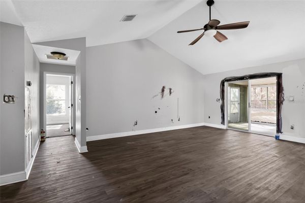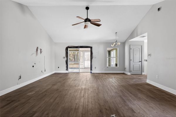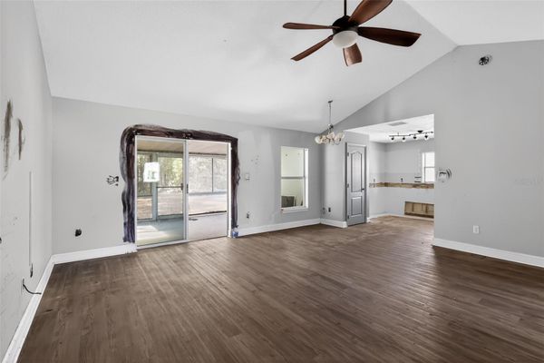 Tucked away on a quiet street in Eustis, this single-story home sits on a generously sized, tree-shaded lot offering privacy, space, and plenty of potential. Mature trees surround the property, creating a peaceful setting and a natural backdrop rarely found at this price point. Inside, the home features a spacious layout with vaulted ceilings in the main living area, providing an open feel and great natural light. Multiple living and dining spaces offer flexibility for everyday living or entertaining, while sliding glass doors lead to a screened porch overlooking the backyard — an ideal spot to enjoy the Florida breeze. The primary bedroom includes an en-suite bath, and additional bedrooms are well-proportioned with ample closet space. A two-car garage and extended driveway add convenience, and the expansive backyard allows room for outdoor living, gardening, or future enhancements. Located just minutes from downtown Eustis, Mount Dora, local parks, shopping, dining, and major roadways, this property offers easy access to everyday essentials while maintaining a quieter, residential feel. A great opportunity for buyers looking for space, character, and a location with long-term upside.