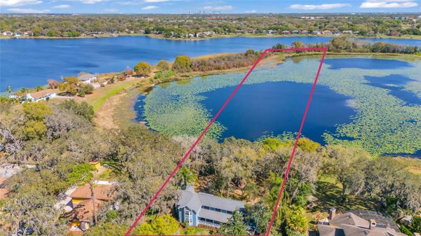 One or more photo(s) has been virtually staged. A rare opportunity to own a private 3.78 acre lakefront retreat with direct access to Lake Hiawassee, offering the perfect blend of tranquility, space, and convenience in the heart of Orlando with no HOA. Experience the ultimate Florida lifestyle with the ability to water ski, paddle board, canoe, or even launch your seaplane directly from your property, all while enjoying peaceful water views and stunning sunsets. This expansive home offers a flexible layout ideal for multigenerational living. The private in-law suite with its own exterior entrance features a full kitchen, living area, full bathroom, laundry hookups, and an additional space with a closet that can serve as a second bedroom perfect for guests, extended family, or private quarters. The main living area boasts a bright, open-concept design with custom wood-plank ceilings and warm wood flooring throughout the living, dining, and kitchen spaces, all oriented to capture tranquil water views. A half bath and laundry closet are conveniently located on the first floor, while a spiral wooden staircase leads to the second level. Upstairs, a dramatic double-level loft offers versatility for a media room, office, or additional lounge space. The primary suite retreat includes an adjacent bonus room ideal for a nursery, office, or private sitting area, along with a spacious bathroom with a glass enclosure. Two additional bedrooms and a full bathroom with a relaxing garden tub complete the second floor. Outdoor living is equally impressive. Relax on the front or back porch while taking in the Florida sunshine and serene lake views. The fully fenced 3-acre property provides privacy and includes a custom-built shed house for additional storage or workspace. Recent upgrades include: New Roof ($20K), Custom Deck ($70K), New A/C ($20K), New Exterior Doors with Digital Locks ($3.2K), Interior & Exterior Paint ($17.5K), New Sidewalk ($2.5K), New Gutters ($2.5K), New Window Screens ($4K), New Landscaping ($5K), and Tree Removal ($20K). The irrigation system runs on well water for added savings. With its generous layout, the home can easily be converted into a 6-bedroom residence. Ideally located just minutes from Downtown Orlando, Universal Studios, Disney, SeaWorld, and Orlando International Airport, this property combines the privacy of lakefront living with city convenience. Experience rare acreage, direct lake access, and endless recreation in one of Orlando’s most desirable locations.