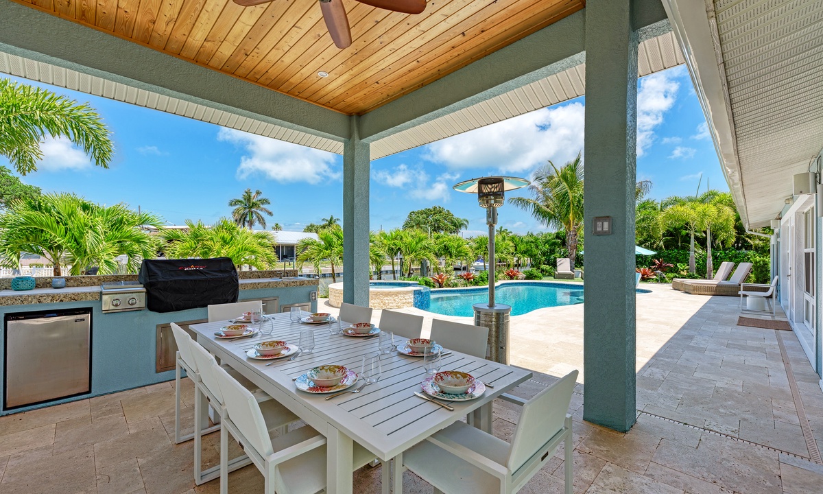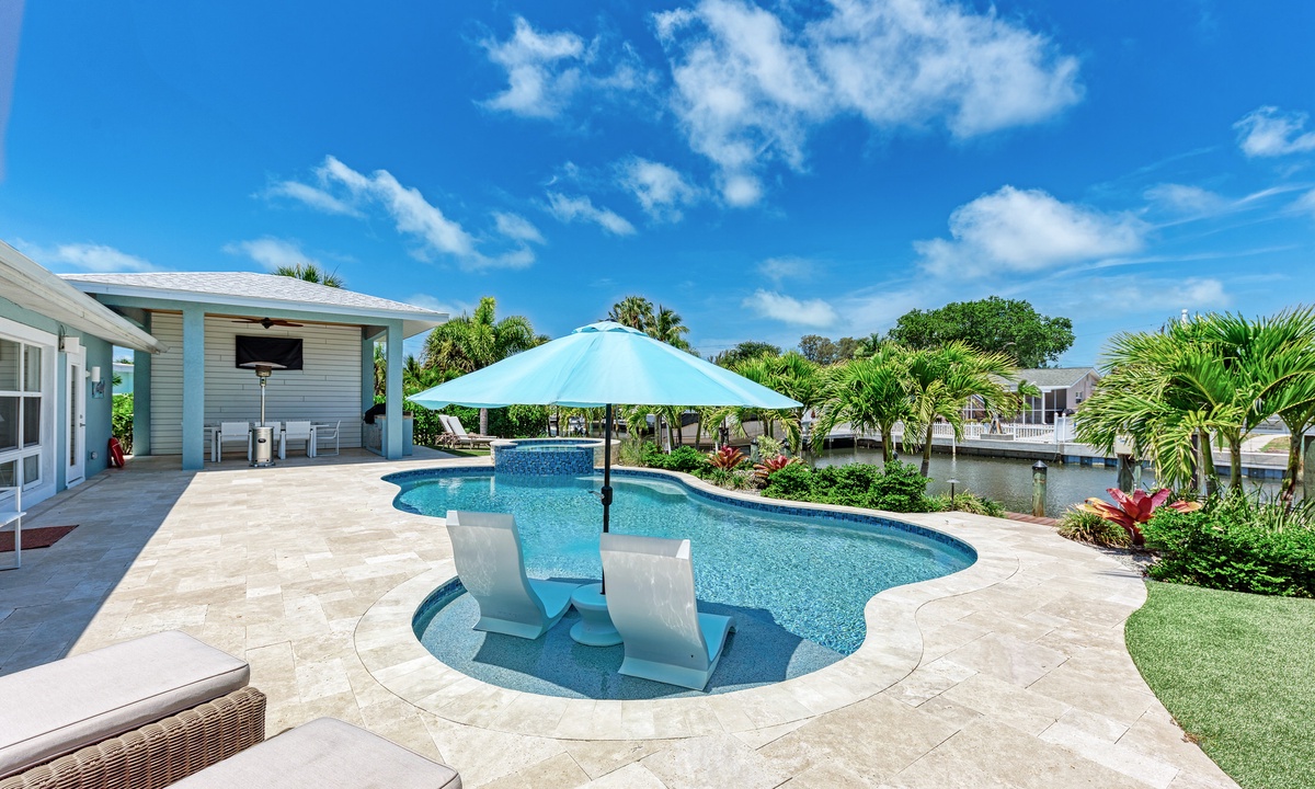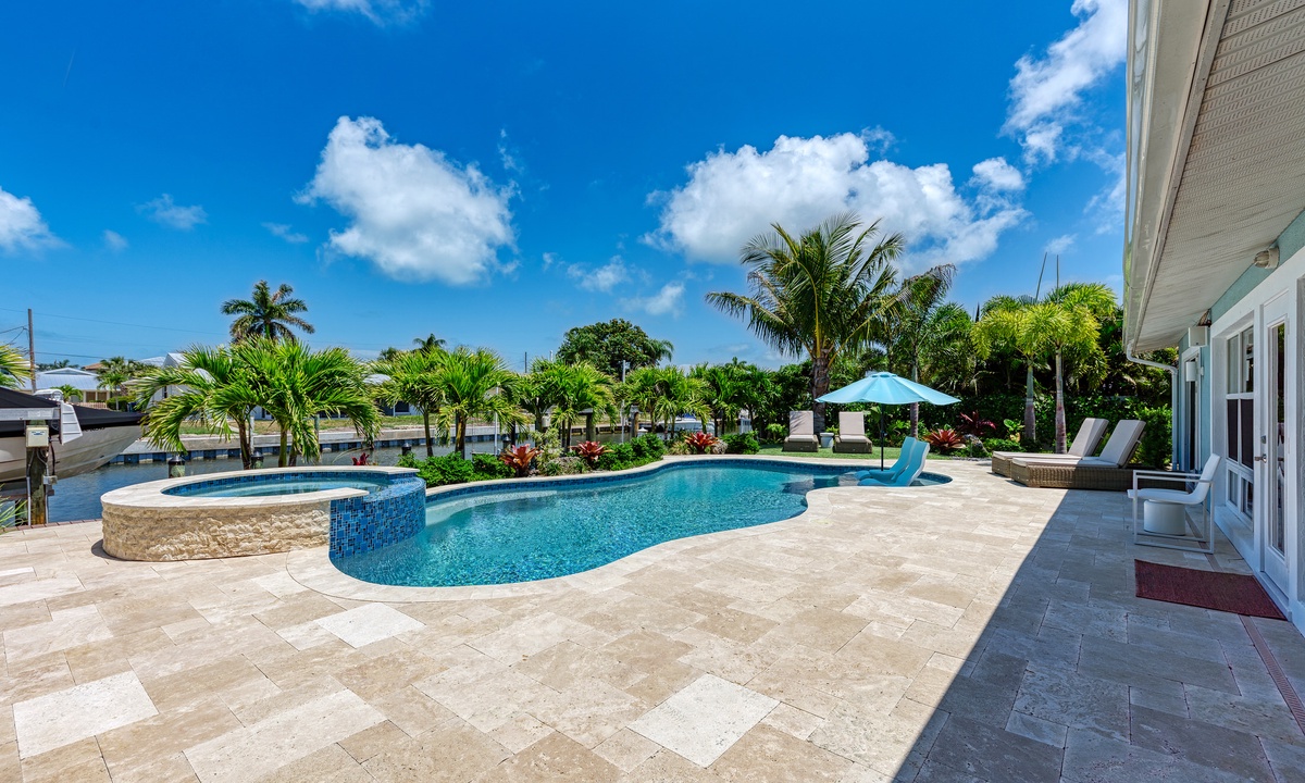 Paradise found indeed! Walk into the open floor plan and look out over the private heated pool, canal, dock and views of open water. This vacation retreat has 3 bedrooms and 3 bathrooms as well as smart Tv's in the living room, each bedroom and the outside patio. The kitchen is renovated for the chef in your party with updated appliances. Also with one available boat dock and 25000lbs boat lift bring your boat, so you can take advantage of the famous Florida waterways as well.
